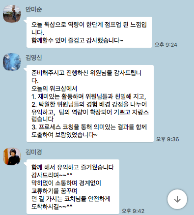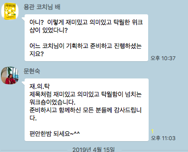 한국코치협회 역량강화위원회의 워크샵이 있는 일요일 오후.