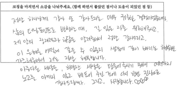 삶에 대한 통찰을 얻었다는 소감이었습니다.