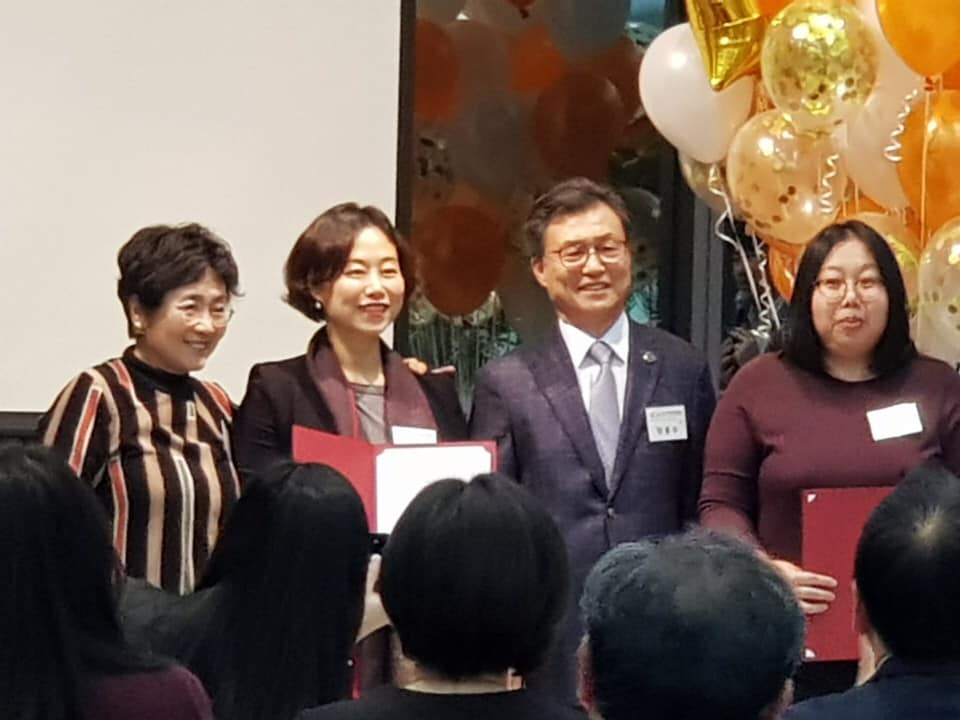 인사를 나누는 송년회에서 기여상을 받았습니다.