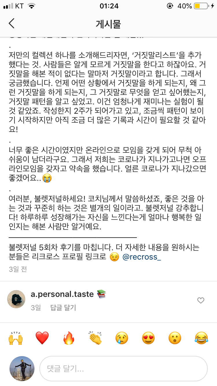 올해 5월부터는 매달 초 리크로스에서 불렛저널 정기 프로그램으로 확정되었다.