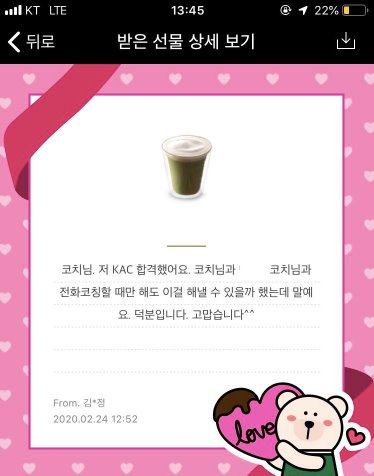 멘토코칭을 진행해 KAC합격한 코치님이 감사의 선물로 보내주신 쿠폰이었어요.