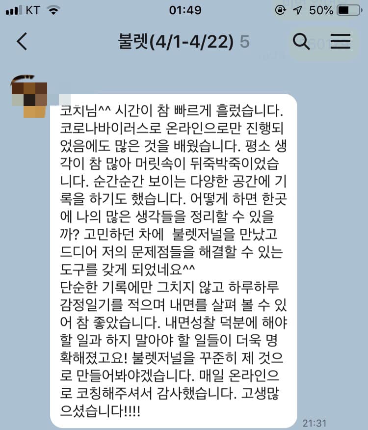 매일 리뷰를 통해 성찰하고 다음날 더 나은 내가 되도록 한다!