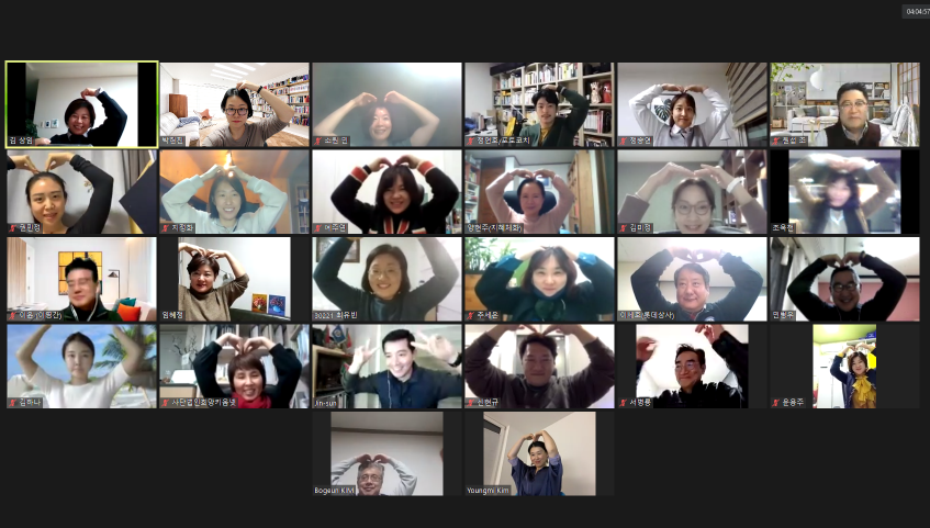비즈니스 코칭 팔로우업을 하려고 26명의 코치들이 온라인으로 모였다.