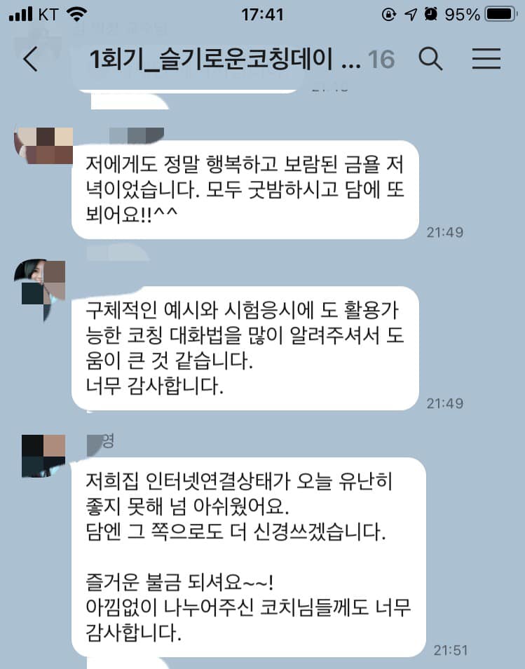 코칭 실습 시간도 채우는 일석이조의 시간이었네요.