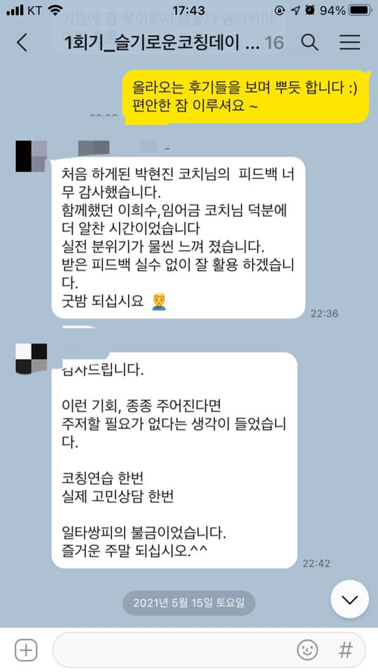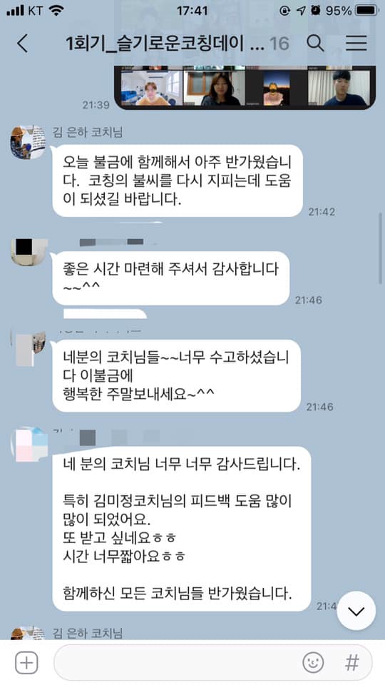 그간 코칭하며 변화를 경험한 사례 공유를 하고