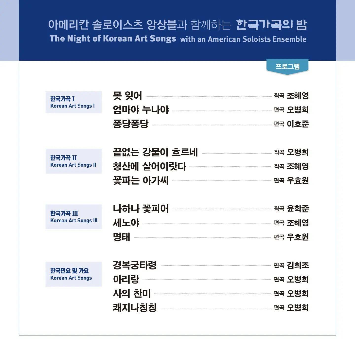 24명의 미국인 성악가들이 한국가곡을 부른다는데 무척 궁금했습니다. 미국인들이 한국 가곡을 13곡을 부른다고? 언어와 감정을 어떻게 해석하고 전달할까?
