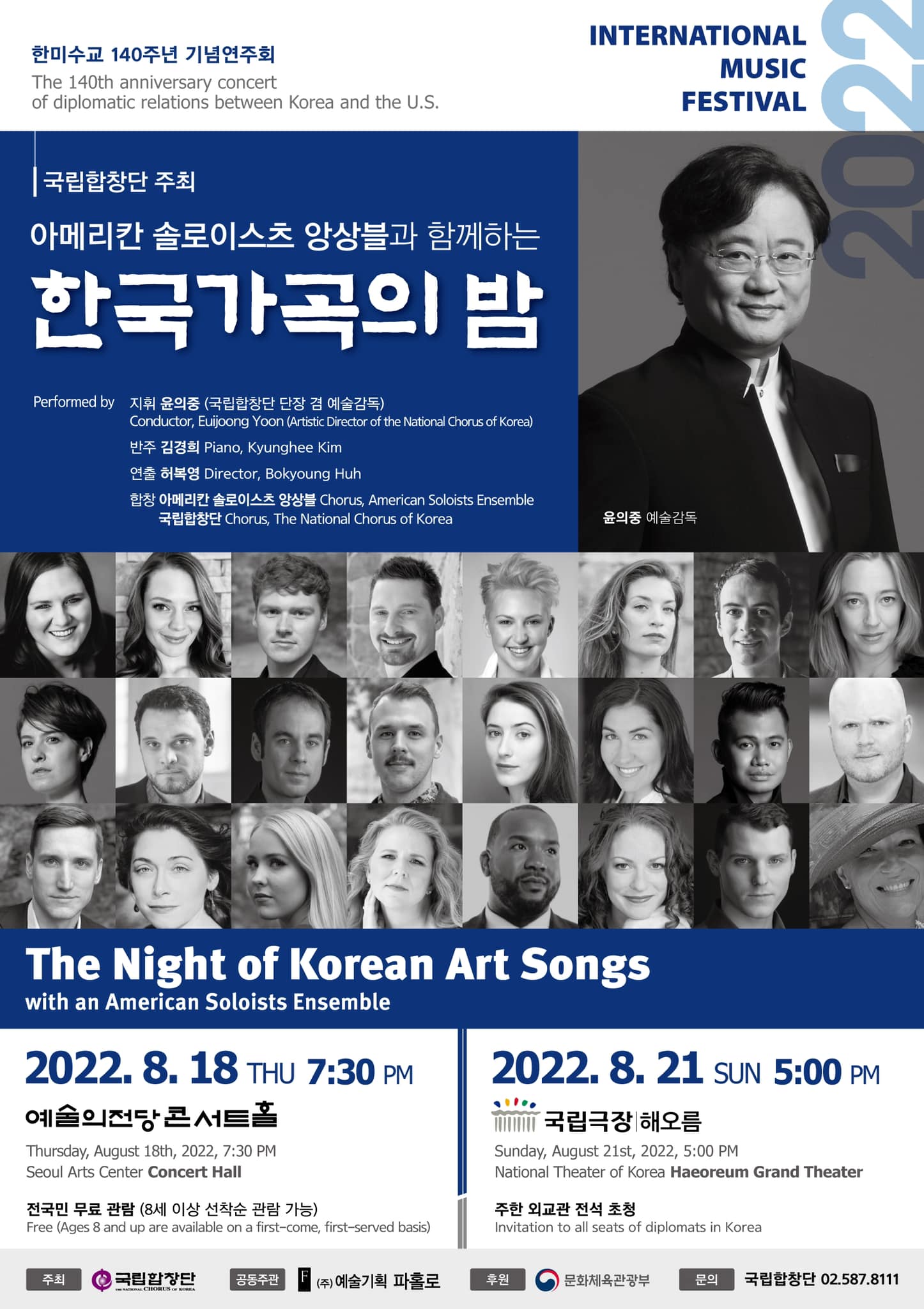 한미수교 140주년 기념 연주회, 국립합창단 주최로 아메리칸 솔로이스츠 앙상블과함께 <한국가곡의 밤>에 다녀왔습니다.