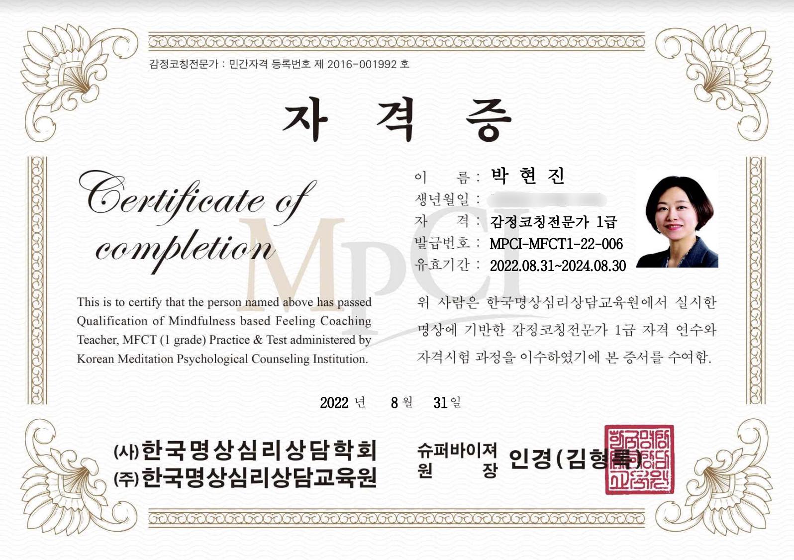 <감정코칭전문가 1급>이라는 성과를 만들었네요.