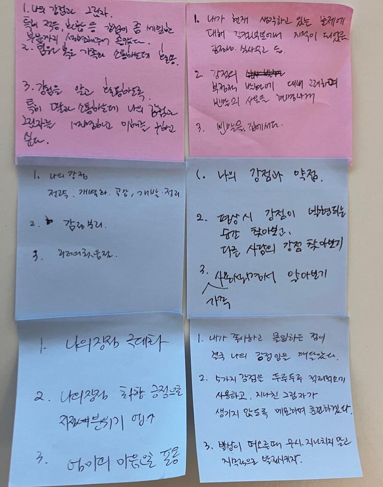 특강후 '강점 기반의 자기이해' 주제로 그룹코칭을 진행했습니다.