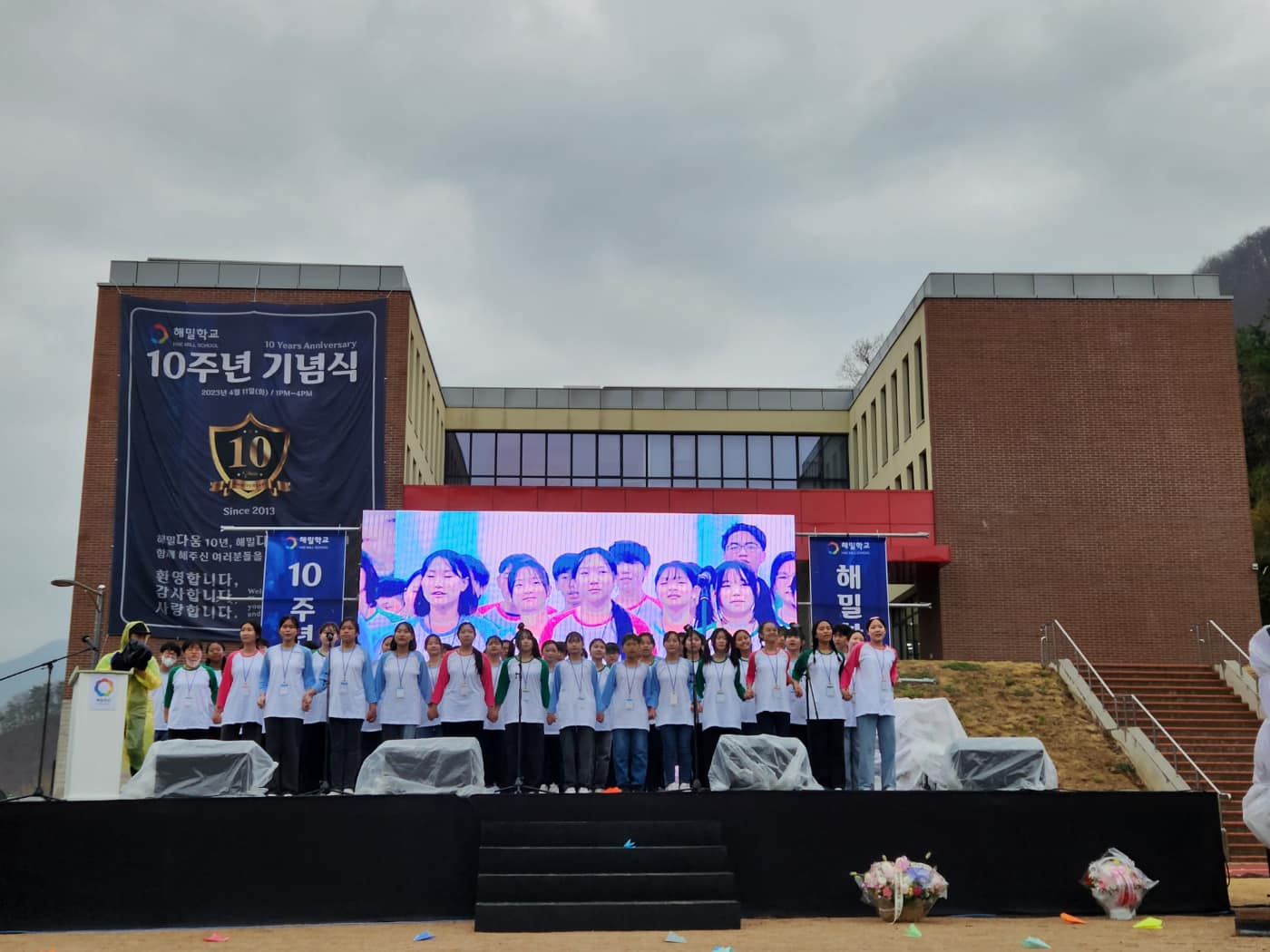 10주년을 이어 100년을 이어갈 비전 선포와 재학생들이 함께한 거위의 꿈 합창도 감동이었습니다.
