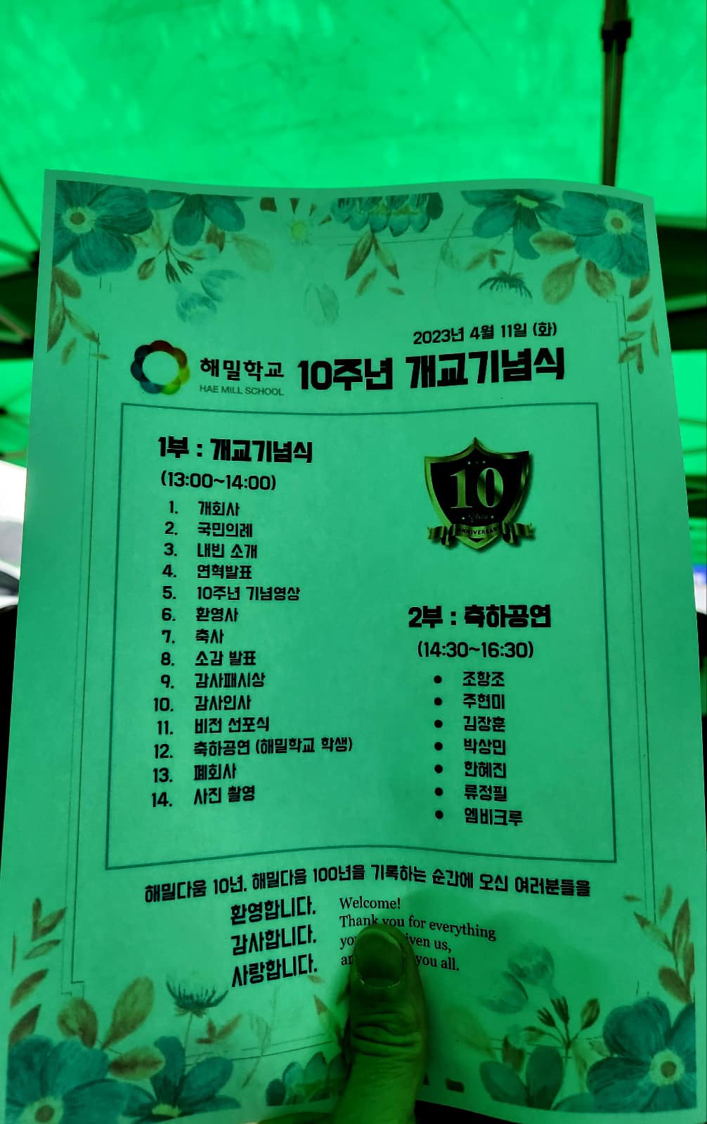 해밀학교 10주년 개교기념행사에 다녀왔어요.