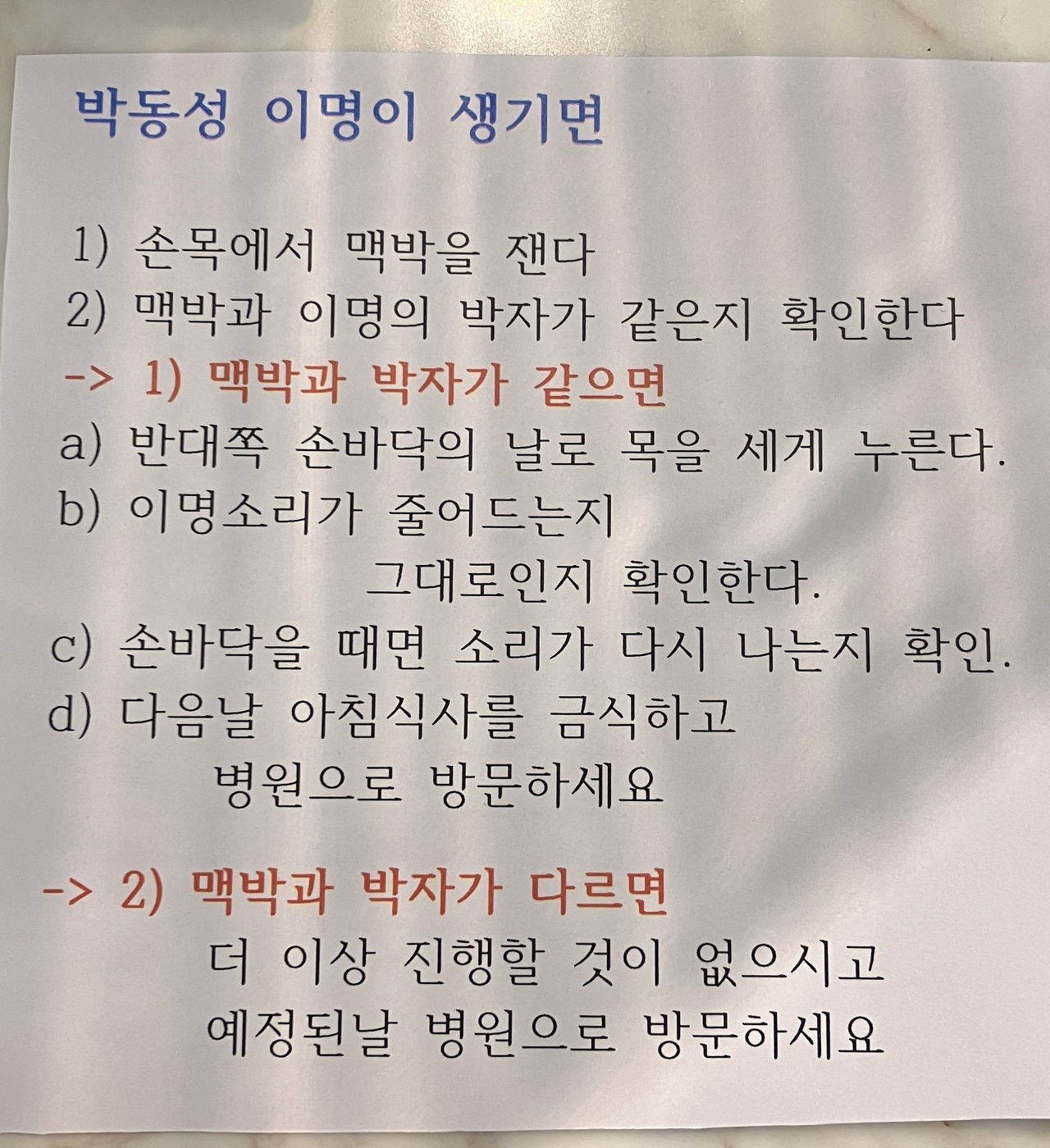 맥박과 이명이 혈관에서 나는 소리인지 확인할 수 있는 방법을 알려주었다.
